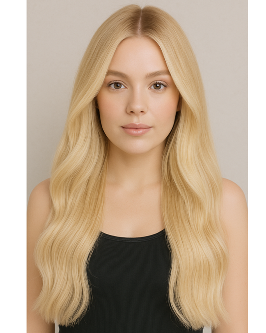 Want natural blonde hair extensions that add volume and length? Look no further than Bombay’s tape in hair extensions. Our luxury blond hair extensions are made from the highest quality, 100% Cuticle Remy Human Hair, providing beautiful results lasting for months. From dirty blonde to white blonde, choose from lengths of 16’’, 18”, 20’’, and 22’’. We guarantee you’ll find the perfect blonde look.