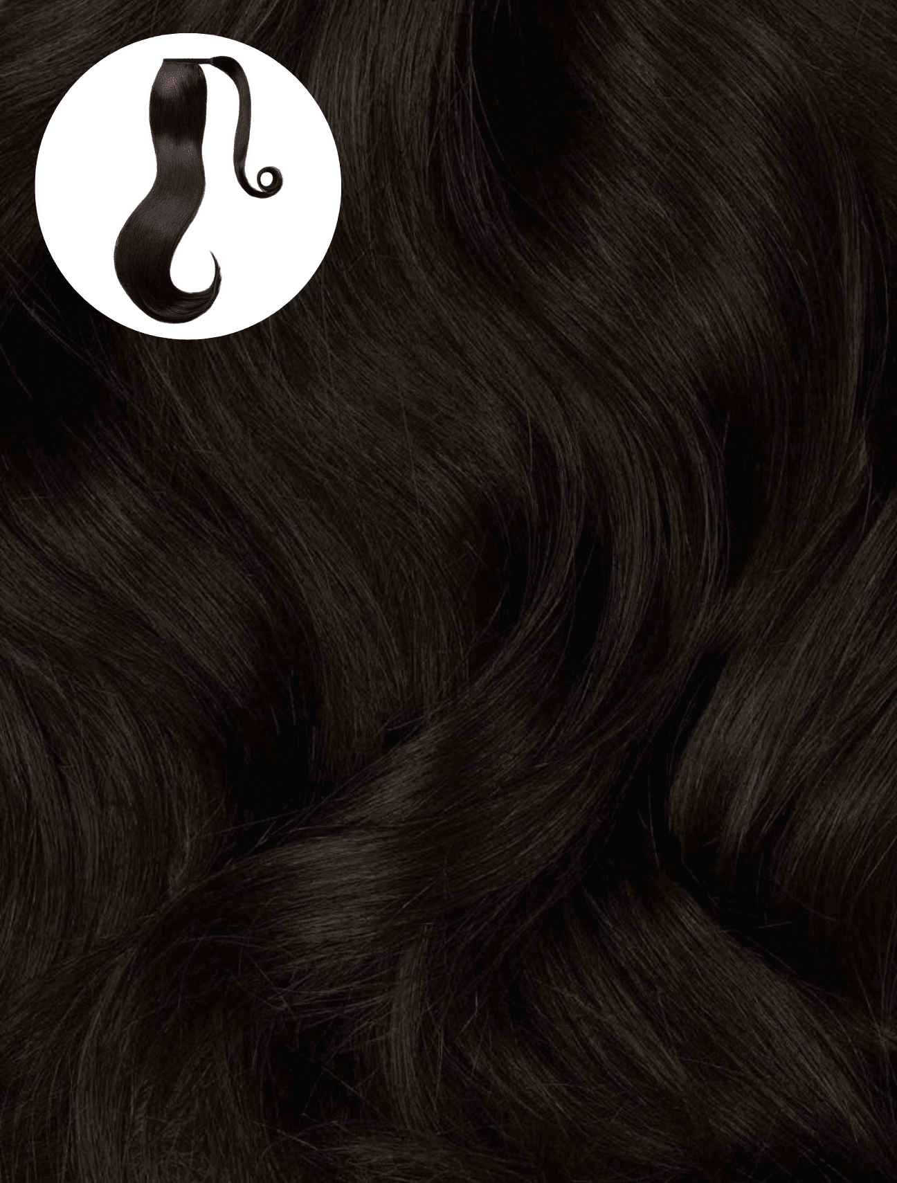 Most ponytail hair extensions are single-drawn and thin, but all Bombay Hair's Clip in Hair Extensions are 100% Real Human Hair and double-drawn. Meaning our hair is thick from root-to-tip. Bombay Hair has sourced out the most beautiful Cuticle Remy hair in the world, and has 100% of the cuticle intact allowing for tangle-free and smooth hair that doesn't dry out quickly. Our Cuticle Remy hair quality is unmatched!