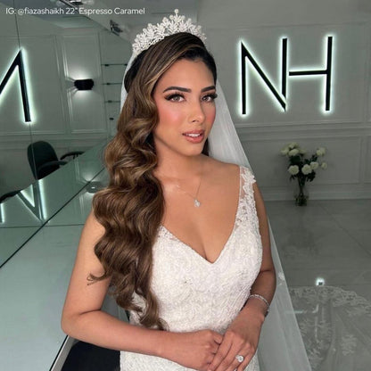 Introducing Bombay Hair's Halo Extensions: the ultimate solution for achieving seamless blend, instant volume, and length. These extensions are designed for effortless application and boast low-maintenance care. Crafted with thickness from root-to-tip and featuring double wefts, they exemplify the renowned quality of Bombay Hair. Additionally, we provide two extra clips to enhance volume and ensure seamless blending. Thanks to multiple wires at varying lengths, achieving the perfect fit has never been easier.